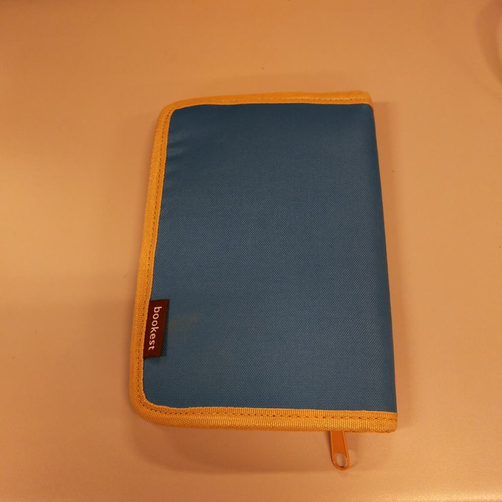 以前はブックカバーなしで入れてたけど、やはりページが折れたりするのでチャック付きブックカバー買いました。これすごくいいです。カバーがはずれることもないし、チャック閉めればしっかり本を守れます。